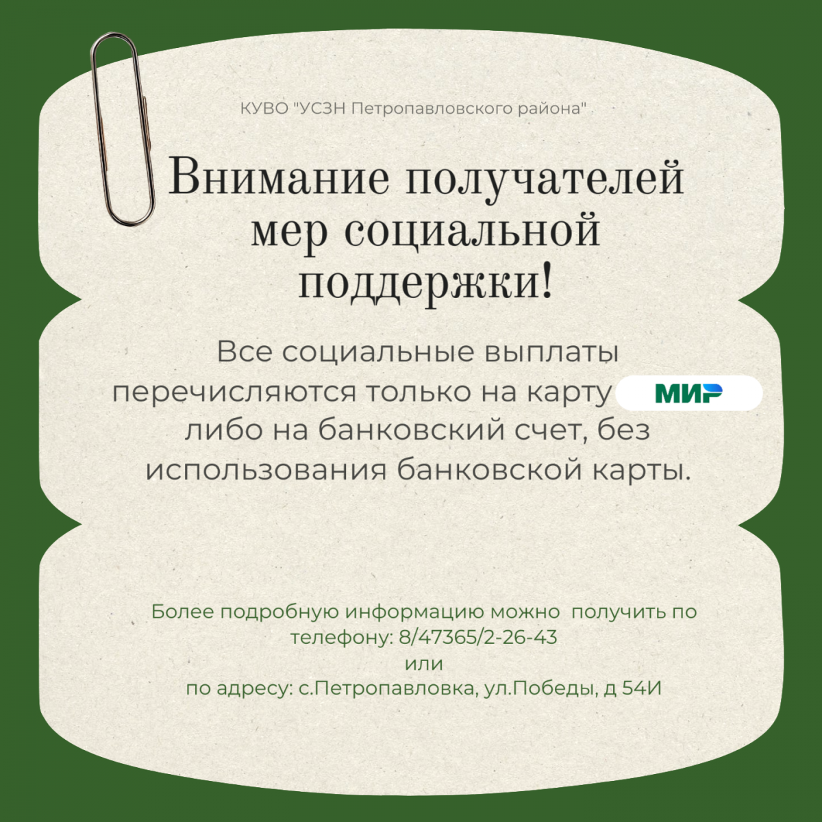 ВНИМАНИЕ получателей мер социальной поддержки!!!